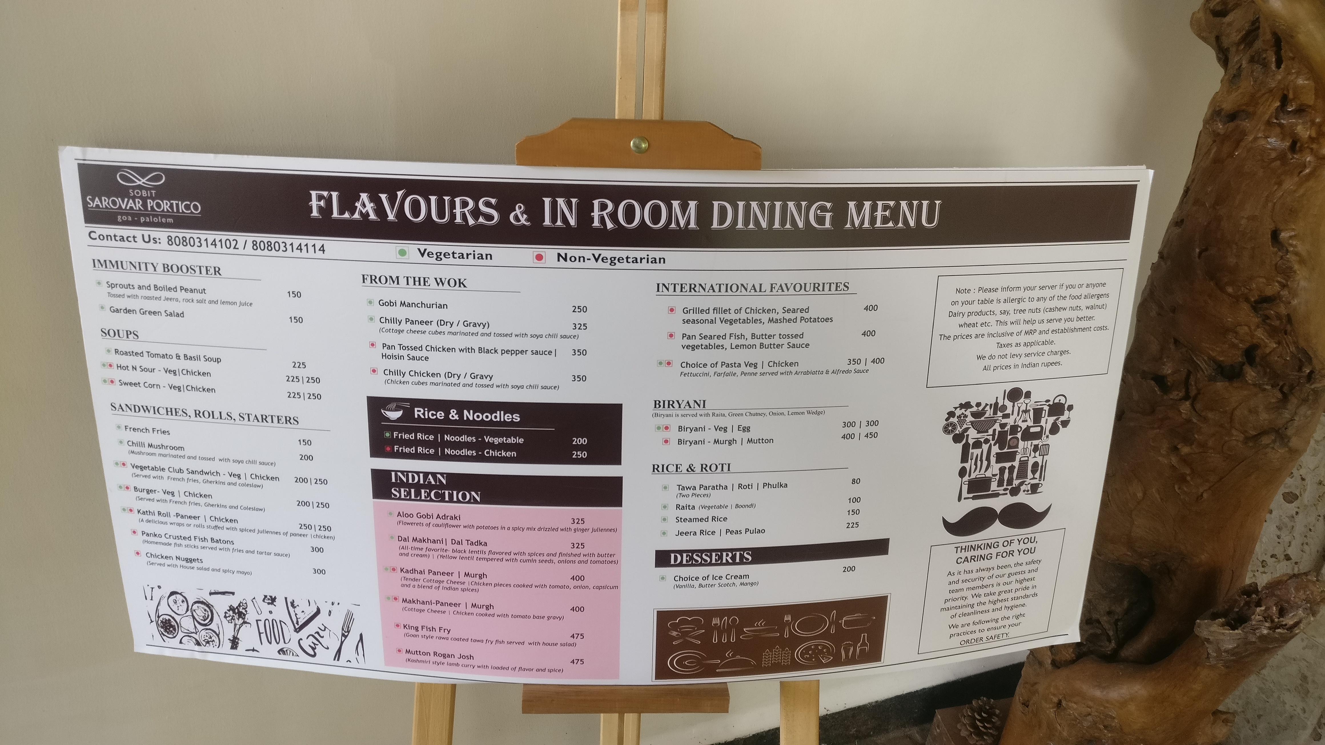 There is a strict safety protocol followed by the hotel. There are sanitizers everywhere, the rooms are sanitized before check-in, the staff does not come inside the room after you come, and all services like housekeeping and in-room dining are contact-less.